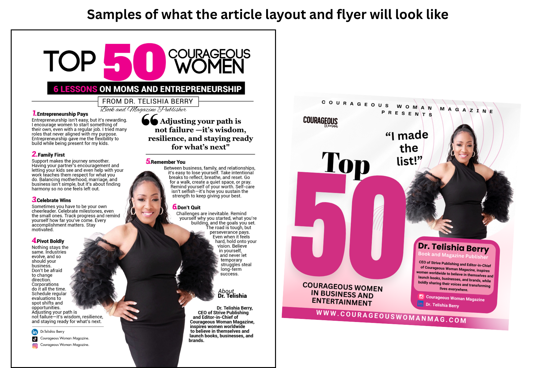There is no fee to be selected, and honorees will be acknowledged by name, photo, and business title on the official Top 50 Courageous Women 2025 roster that will be shared on our website and in an upcoming issue of Courageous Woman Magazine. Â